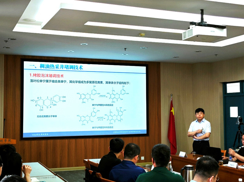 在高质量发展与技术交流环节,参会人员聚焦科学研究与生产需求,就稠油开采相关技术领域进行交流探讨。张华、崔盈贤分别作了题为“渤海油田稠油开采现状与攻关方向”“稠油热采用高温堵调体系”的学术报告。李松岩、齐宁、董长银、吴飞鹏、王杰祥分别作了题为“稠油低碳高效开采理论与技术进展”“稠油热采井堵调技术与酸化解堵技术研究进展”“疏松砂岩稠油油藏防砂控水技术研究与进展”“物理波场强化开采研究与进展”“潜油直驱螺杆泵举升成套装备设计及应用”的学术报告。双方围绕渤海稠油油田的高效开发开展了深入的技术交流,并就渤海稠油的攻关方向交换了意见。
