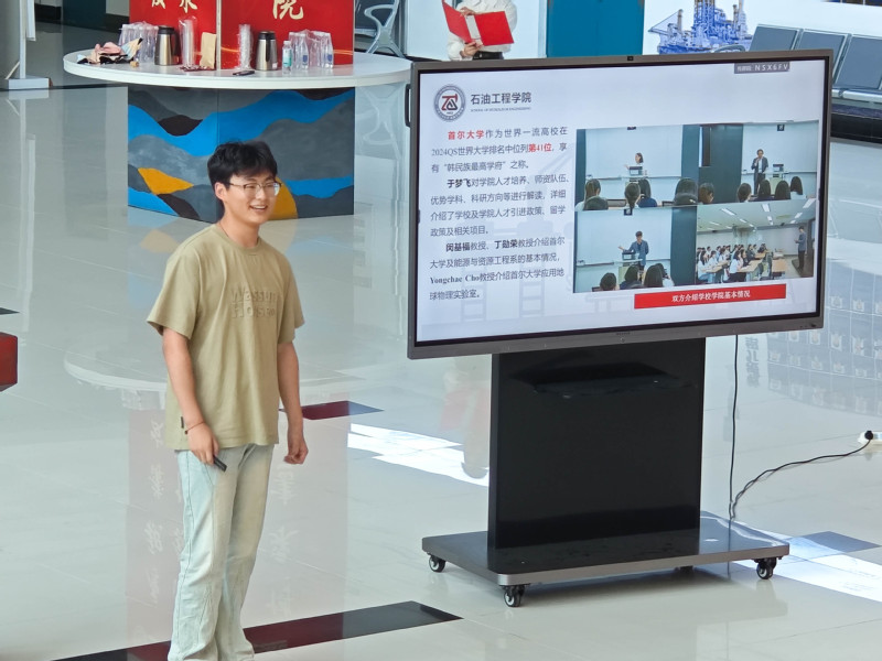 活动伊始,李传錡通过生动的讲解为同学们勾勒了一幅“博采众长·能源强国”海外实践团在韩国研学的精彩画卷。他细致入微地介绍了研学路线与所访高校,通过对比中韩两国在交通服务、信息化建设、社会治安及医疗资源等方面的异同,激发了同学们对世界的无限遐想与探索欲。李传錡的分享,不仅是一次知识的传递,更是一次心灵的触动,他鼓励同学们放眼全球,以更加广阔的视角去审视世界,通过交流增进友谊、共谋发展。