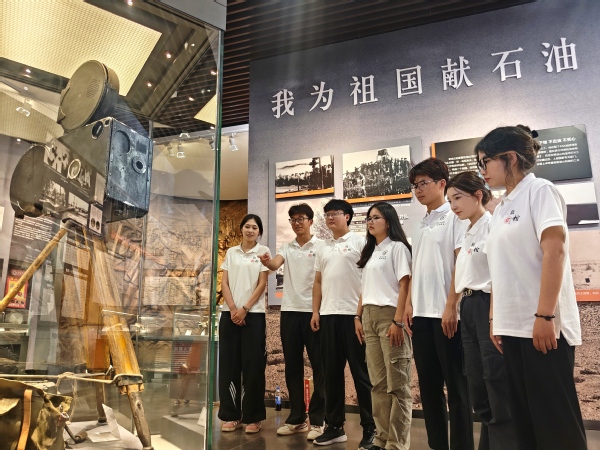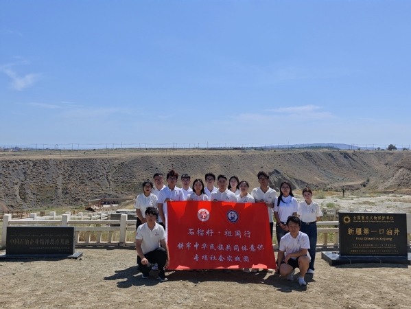 浩浩乎平沙,茫茫乎戈壁,巍巍乎钻塔,猎猎乎旌旗。在百里油区,实践队员们彷佛回到了老一辈开拓者“拼命拿下大油田”的那段激情岁月。来到独山子攀登泥火山,拾级而上,看千年油泉喷发口,油泉中黢黑的石油见证着一代代石油工人为这片土地的付出。为追寻前辈的足迹,实践队员们走入克拉玛依博物馆和黑油山。不同时期的照片、图表、实物以及沙盘、模型上千余件(幅)映入眼帘,讲述着一代又一代石油人在石油精神的鼓舞下不忘初心,薪火相传,在一个又一个地方创造出滚滚油龙。“石油精神将会一直传承,永不消散,在一代又一代石油人身上孕育新的希望。”实践团成员金哲旭说道。