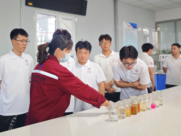 在独山子团区委副书记邓菲的带领下,实践队员们走访国家高新技术企业—新疆海润科技有限公司,参观企业生产车间、实验室等。总经理杜慧向两校师生介绍了企业文化,表达了对人才培养的需求,董事长谢海江勉励实践队员们扎根西部,为新疆地区经济发展注入更多创新活力,在广袤的边疆土地上实现人生价值。