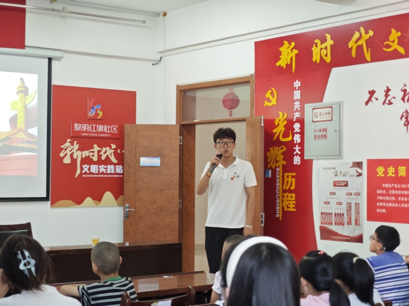 在黎明红旗社区中,实践队员们联合社区开展红领巾小课堂活动,邀请老党员向当地小朋友讲述“雷锋出差一千里,好事做了一火车”的那段激情燃烧的岁月。在故事分享会上,路斌、阿迪拉·奥布力喀斯木及散杜哈西·奴尔木汉讲述了“党徽大叔”阿布都加帕尔·猛德和“时代楷模”拉齐尼·巴依卡的动人事迹。以漆为笔,以水为墨,实践队员们为社区的小朋友们带来了一场绘声绘色的漆扇艺术课堂。每一次涂漆,都是对传统技艺的触摸;每一面扇子,都承载着他们对未来的憧憬。绘制扇面的过程中,小朋友们不仅亲手体验了漆艺与扇面结合的奇妙,更在潜移默化中感受到了中华传统文化的精粹与魅力。