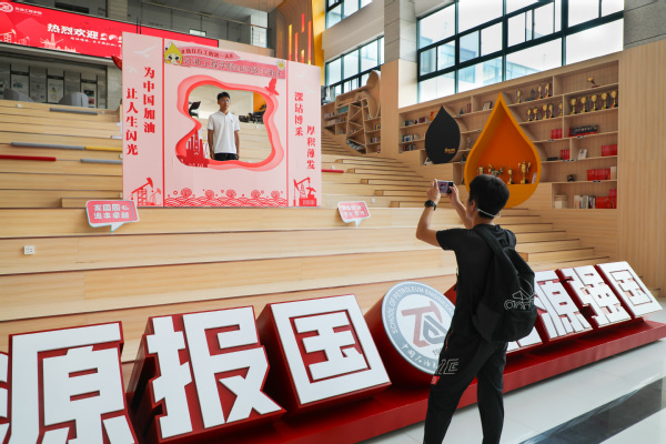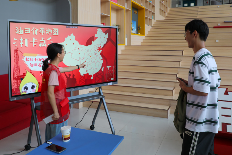 新生在“油田分布地图打卡点”互动体验区认识油田