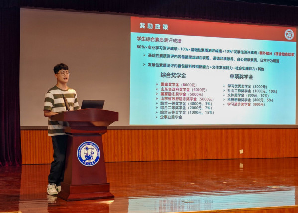 第一年,我们硕果累累。张家馨首先对同学们过去一年的收获成果进行了总结。过去的一年里,同学们积极参加各类比赛,取得了众多证书奖项,张家馨对这些同学提出了表扬,鼓励他们继续保持奋进的姿态。同时,告诫同学们要打破信息壁垒,关注各类信息平台,积极参加科研项目,为自己的未来发展积累宝贵经验。