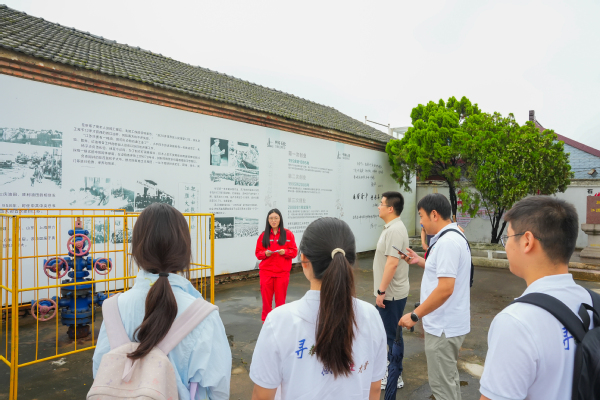 “在我们面前的这口井是苏北盆地第一口工业油流井,它的问世打破了江苏无油论,实现了苏北油气的‘零’突破......”实践队员们正认真聆听泰州采油厂的宣讲员讲述着苏20井的故事,“打隔板、装钻机、固油井一张张黑白照片生动展现了当时石油工人为解决苏北人民对于油井12年的渴望的决心。”