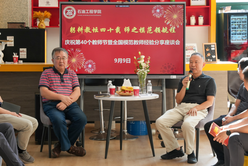【本站讯】值此第40个教师节来临之际,为进一步弘扬教育家精神,激励广大教师以模范教师为榜样,9月9日,公司工会举办“躬耕教坛四十载 师之模范领航程”庆祝第40个教师节暨全国模范教师经验分享座谈会。邀请全国模范教师管志川教授、孙宝江教授做客,与青年师生分享育人经验,交流心得体会。公司党委书记张展、副经理黄维安、党委副书记陈银吨、工会主席赵晓燕,青年教师代表以及员工代表齐聚一堂。