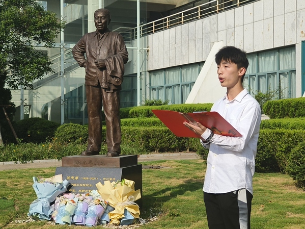 活动现场庄严肃穆,气氛热烈而感人。清晨的阳光温柔地洒在沈忠厚院士的雕塑上,仿佛也在向这位科学巨匠致以崇高的敬意。随着悠扬的音乐响起,师生们缓缓走向雕塑前,每个人怀着对沈院士的敬仰之情。
