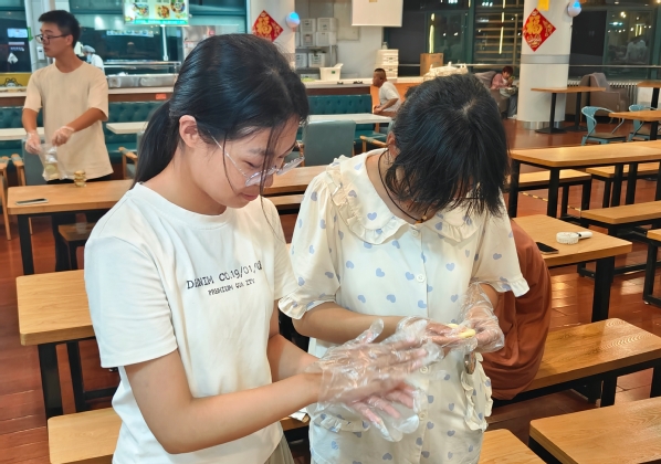 同样精彩的还有石工2304团支部和化学化工公司部分团支部在9月12日联合举办的“盈月揽芳华,和熙共此时”中秋庆祝活动。在活动过程中,四个团支部分工明确。本研化工2301团支部负责制作冰糖水果,用小锅融糖,将水果裹上糖浆。 化学2302团支部负责现场制作冰皮月饼,包括和面、调色、包馅、压制成型。 化学2301团支部结合传统中秋元素和现代设计理念制作并装饰灯笼。 石工2304团支部负责制作漆扇,设计并绘制中秋节相关图案,寓意团圆美满。最后大家交流分享自己的作品,他们一同感受着这份节日的喜悦。