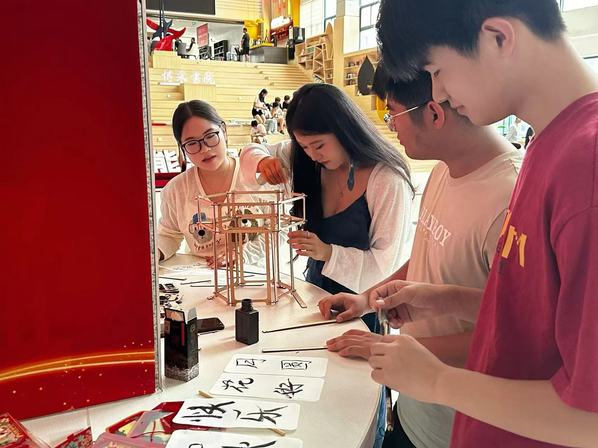 为传承和弘扬了中华传统文化,9月12日,石工(智能)2302班成员举办了“中秋佳节,团圆可漆”的主题活动。活动伊始,团支书详细介绍了漆扇制作方法。随后,同学们使用松节油稀释漆,通过滴入清水桶中并用竹签挑动制作漆扇。团支部成员还与餐厅工作人员互动,共同体验了传统手工艺漆扇的制作。次日,石工(智能)2302三位同学代表班级向老师们赠送漆扇,向老师们送达了节日的祝福。