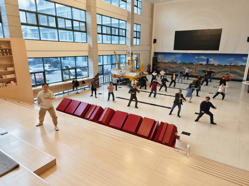 收到通知后,公司在短短一周的时间共组织了5次集中训练,由太极拳协会会长于梦飞担任教练,将二十四式简化太极拳逐个动作拆分讲解。老师们积极参与,认真学习每招每式,互帮互助共同提升,最终呈现了一次精彩的演出。