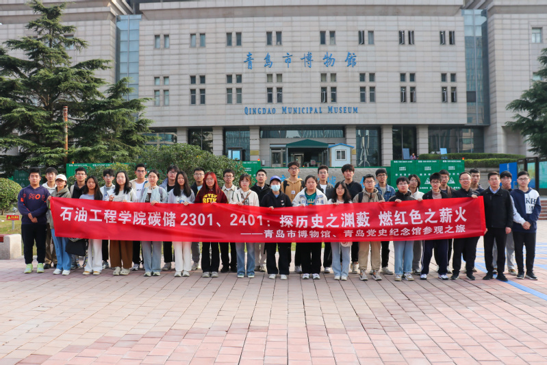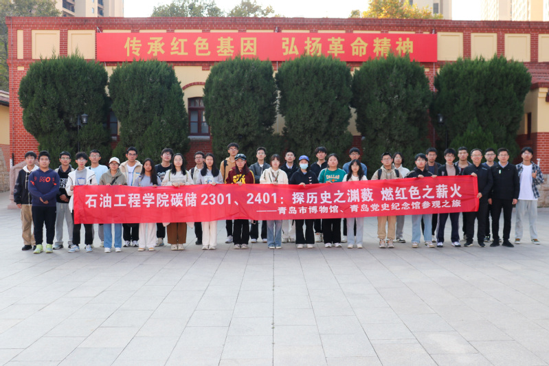 【本站讯】为让员工厚植爱国情怀,增强团队意识,践行奋斗精神,11月10日,碳储专业2301班与2401班同学在系主任贾寒老师、学业导师徐龙老师带领下前往青岛市博物馆、中共青岛党史纪念馆进行“探历史之渊薮 燃红色之薪火”主题研学活动。