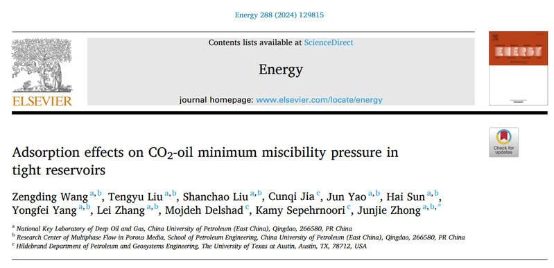 论文“Adsorption effects on CO2-oil minimum miscibility pressure in tight reservoirs”(《壁面吸附效应对致密储层CO2最小混相压的影响》)发表在能源领域国际知名期刊 《Energy》。论文第一作者为2022级博士生王曾定,指导教师为钟俊杰教授。该研究揭示了纳米孔隙中壁面对油相重组分的选择性吸附效应对CO2最小混相压存在显著影响。通过构建新的理论计算方法,研究详细分析了壁面吸附效应在不同孔隙尺度下对混相压的影响程度差异,并进一步为构建油藏尺度最小混相压预测模型奠定了重要的理论基础。
