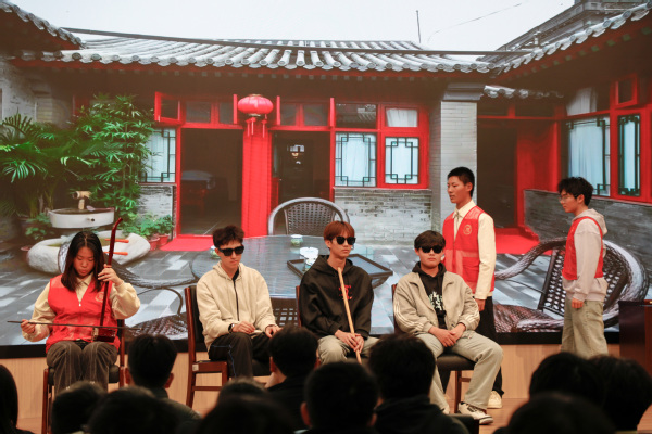 活动伊始,由主持人讲述志愿服务对于老员工的重要意义。首先,从视障人士的角度出发,以公益视频的形式讲述了“盲人电影院”这一特殊的场所,表现了我国对于盲人群体的特殊关爱。接着活动进行到第一部分—《盲人电影院》话剧表演,此次话剧重点聚焦盲人这一弱势群体,以话剧的形式展示出青年志愿者对于残障人士的关心照顾,向观众们传达出新时代青年志愿者的应有之义。