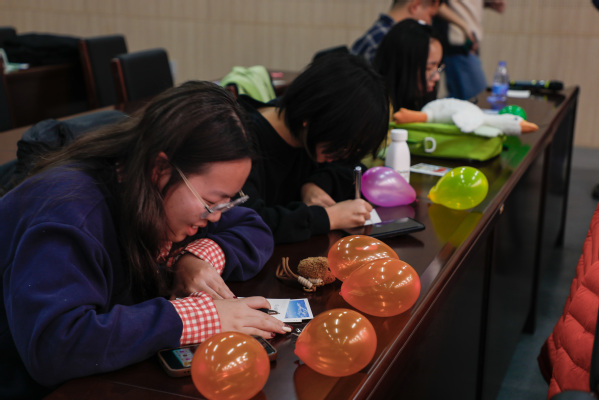 动进入第三部分—“暖心树洞”解压活动,在主持人的引导下,同学们纷纷将自己的烦恼与心事写在明信片上,当把写满压力的纸条投入压力“垃圾桶”时,那一瞬间,许多同学都感觉如释重负,仿佛将那些无形的压力关进了一个不会再干扰自己的“牢笼”。活动最后,由公司艺术团的申博文带来歌曲《生生不息》,伴随着温暖的音乐,同学们在本次志愿服务晚会中,学习榜样的力量,释放烦恼的心事,不断向上生长。“经过此次活动之后,我对自己未来的志愿服务活动有了一个明确的规划,也要像这些优秀志愿者一样,将生命之花绽放在祖国需要的地方!”2024级本科生冯一鸣说道。