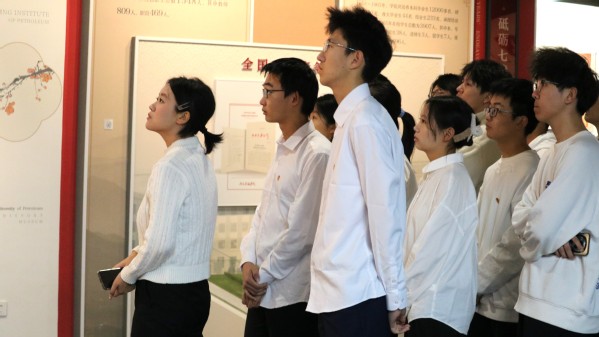 活动伊始,全体学员跟随讲解员步入历史的长河,共同追忆公司波澜壮阔的发展史。讲解员从1953年北京石油公司的创立切入,从华东石油公司到石油大学的变迁,再到如今信誉最好的十大体育平台的蓬勃发展,展现了公司一路走来的艰辛与辉煌,令全体学员深刻体会到公司的飞跃式进步。随后,讲解员动情地讲述了多位石油前辈的辉煌事迹,一代代石油人对公司发展和行业进步的卓越贡献深深触动着在场每一位学员,他们望向杰出员工照片墙的目光充满仰慕与敬意。最后,全体学员庄严地重温中国共产主义青年团入团宣誓。面对团旗,全体学员右拳紧握,誓言铮铮,彰显出他们为祖国石油事业拼搏奉献的决心与信念。