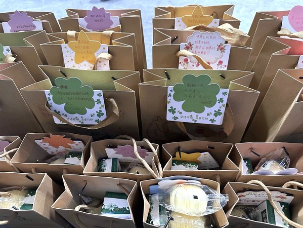 而在教室,考研学子们埋首书海,为梦想咬牙坚持。志愿者们轻手轻脚,将爱心物资与无声的鼓励一齐送给他们。即使只是一张卡片、一袋牛奶和面包,却似冬日暖阳,让学子们在漫漫寒夜、漫漫征途中,真切触摸到来自向阳花公益团队的温暖关怀,知晓自己并非孤身奋战。