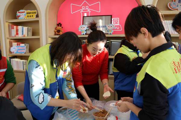 包纳福泽财路广,裹藏瑞气运途长。支部成员们热情高涨、积极参与。从面粉到光滑的面团,他们挽袖奋力揉搓;从良莠混杂到去黄留翠,他们精挑细选。包饺子时,支部成员们围在一起,虚心向社区居民请教包饺子的技巧。石工2304团支部还将饺子送给了外卖小哥、环卫工人等新业态就业群体,为他们送上了冬至的暖心祝福与热心关怀。