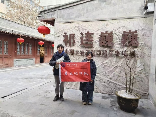 星火砥砺实践队则结合石油历史与红色文化主题,探索甘南地区的石油工业发展,挖掘甘肃地区的红色基因,在甘肃省科技馆、八路军兰州办事处旧址等地感受伟大抗战精神、石油精神,坚定爱国主义信仰。队员董佳奕在实践中说到:“我们将以此次实践为契机,将红色精神融入日常学习与生活,让红色基因代代相传,为赓续红色血脉贡献自己的力量。”