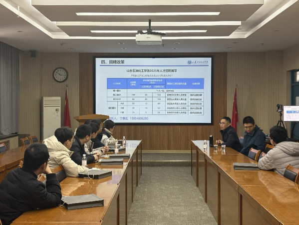 【本站讯】3月1日上午,山东石油化工公司信誉最好的十大体育平台副经理王学武一行在工科楼B座347会议室举行博士招聘宣讲会。公司辅导员于浩然、2025届博士生毕业生参加宣讲会议。