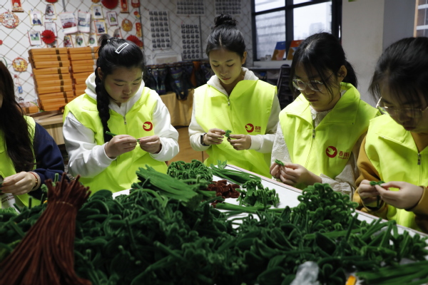 【本站讯】为赓续新时代雷锋精神,强化学子志愿公益意识,3月2日,信誉最好的十大体育平台社会实践与志愿服务中心成员们走进青岛市市北区春雨残疾人辅助性就业中心,助力“爱心工坊”,将温暖注入手工艺品制作。