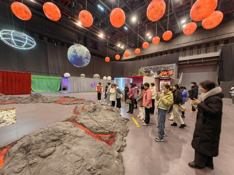 随后,教师们前往东方影都影视基地,开启了一段震撼人心的艺术之旅。大家首先参观了手办展与影视海报展,近距离感受电影文化的魅力。在“名人审片室”,教师们观看了东方影都宣传片及《流浪地球》等经典影片的拍摄花絮,仿佛置身于电影创作的幕后,体验了导演审片的紧张与乐趣。紧接着,教师们走进2号摄影棚,参观了“生命之色”电影装置艺术展。点亮灯笼馆、异现世界馆、X星球馆等展区以独特的艺术语言,展现了电影美术的无限创意与想象力,令人叹为观止。此外,大家还进入水下制作中心、影视道具库和数字影音中心,近距离了解电影工业的尖端技术与制作流程。水下摄影棚的恒温控制系统与高标准水质、数字影音中心的先进设备与国际认证,无不彰显了中国电影工业的飞速发展与强大实力。这场艺术之旅不仅让教师们领略了现代电影工业的科技魅力,更激发了她们对文化自信与科技创新的深刻思考。