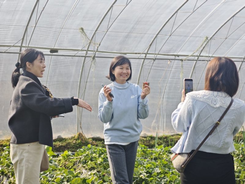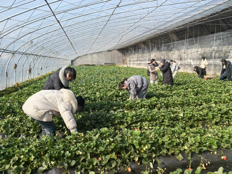 活动首站来到草莓采摘基地。老师们兴致勃勃地穿梭在田间,亲手采摘新鲜的草莓,感受大自然的馈赠。基地采用绿色生态种植方式,草莓生长过程中不使用化肥农药,通过蜂蜜授粉、农家肥发酵等天然方法,确保了果实的健康与美味。大家一边品尝酸甜可口的草莓,一边畅谈生活与工作,欢声笑语中洋溢着春天的气息与节日的喜悦。