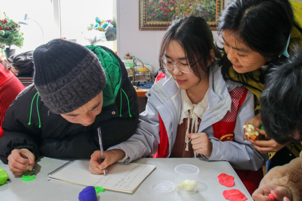 活动当日,成员们一抵达“同行之家”,就兵分两路,迅速投入到志愿服务中。一部分成员和孩子们围坐桌前,进行了一场趣味粘土制作活动,在他们的耐心指导下,孩子们发挥想象力,将五颜六色的粘土变成花朵、小动物等可爱造型。每一个作品,都凝聚了孩子们的内心世界,都承载了成员们与孩子们之间温暖的互动。与此同时,另一部分成员带孩子们进行了户外活动,陪伴他们下棋、打羽毛球,欢乐的气氛不断蔓延。期间,一位孩子还为大家表演了架子鼓,带着自信和快乐,随着音乐节拍,尽情释放活力,感染着在场的每一个人。
