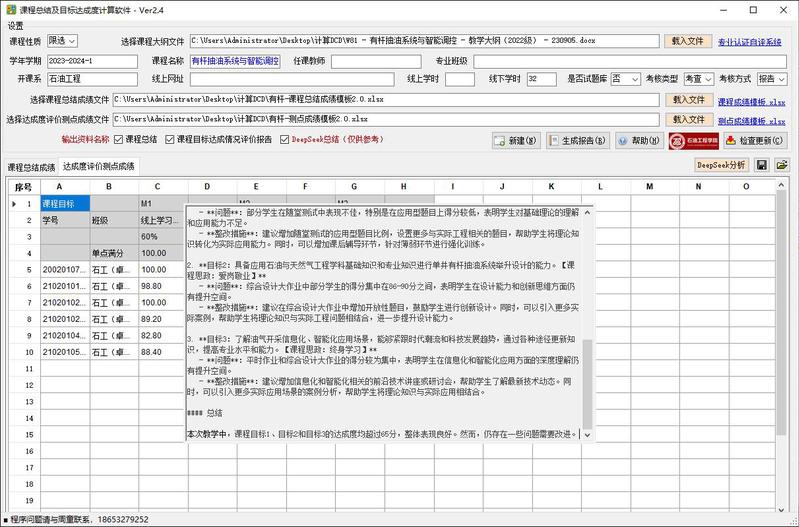 【本站讯】为顺应高等教育的数字化转型,提升教学管理的智能化水平,由公司油气开采工程研究所周童老师自主研发的“课程总结及目标达成度智能计算软件”于3月17日正式投入教学使用。该软件深度融合人工智能技术与工程教育认证标准,标志着公司教学质量管理迈入智能化新阶段,同时大大提升教学资料归档工作效率。