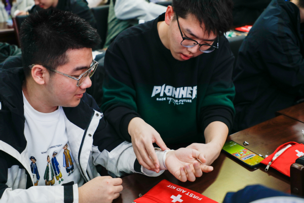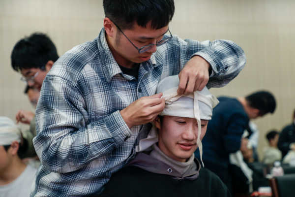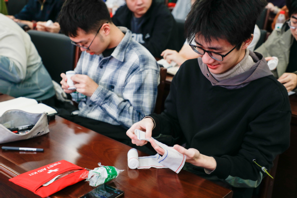 此次培训将人道精神与志愿服务相结合,提升了员工的应急救护能力与社会责任感,为平安校园建设提供有力保障。2023 级本科生孙珑赫表示:“每个人都成为‘第一响应人’,社会就多一份安全保障,老员工更应积极参与,展现担当。”(摄影 鲁子暄)