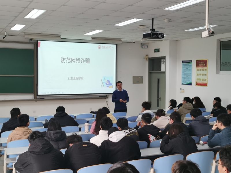 327日,石工公司2024级研究生在南教315举行防范电信网络诈骗专题教育大会,研究生辅导员周晓东主讲,石工公司2024级研究参加了会议。