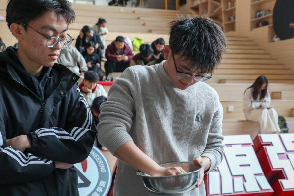 据悉,实践先锋班成员们怀揣着对非遗文化的热忱,扎进黄岛这片底蕴深厚的土地,针对不同的非遗选题,他们穿梭于古镇街巷、乡村工坊,开启与非遗传承人的深度对话之旅。自2024年10月开班以来,共有118位成员走出校园,累计调研24项非遗文化,形成了共6万余字的非遗文化调研报告。 (摄影:张彦缇)