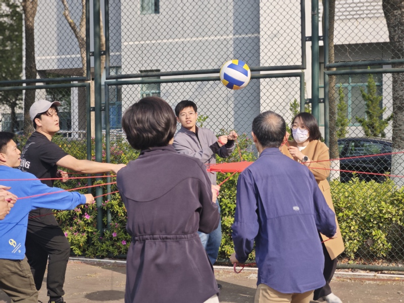 本次比赛作为公司趣味运动会的预热活动,全面对标公司趣味运动会标准,设置8字跳绳、众星捧月、沙包掷准、十米地滚球4个项目。其中,沙包掷准、十米地滚球采用个人赛制,每人限投2次记录最好成绩,参赛教师屏息凝神,反复校准抛掷角度与力度,每一次精准命中都引发阵阵喝彩;众星捧月采用团队赛制,参赛队伍通过实时调整鼓面振幅与移动节奏,将排球稳定控制在最佳位置,最终3组队伍均取得了较好的成绩;8字跳绳同样采用团队赛制,项目融合速度与默契,摇绳的老师把控节奏、适时调整,跳绳的老师衔接紧密、配合默契,最终2组队伍均取得了不错的成绩,并在过程中不断总结参赛经验。