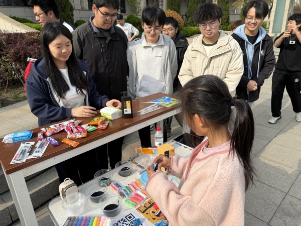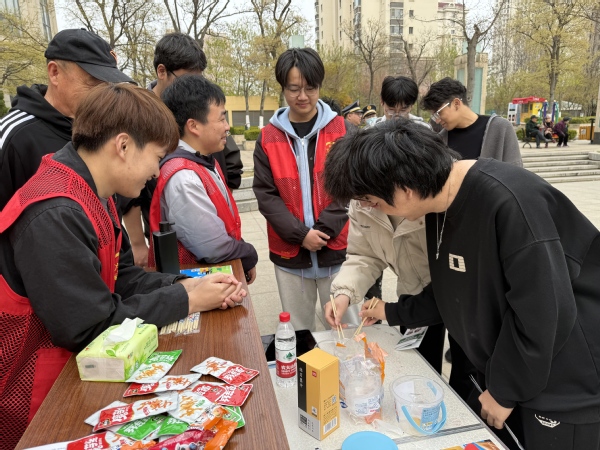 能源探秘,校社共融。4月13日,石工2307团支部联合储运2301团支部、青岛地铁行政执法大队,在天目山路社区凤凰城小区打造“油'你同行·能源探秘之旅”市集活动,以“知识+体验”架起石油科普与社区生活的桥梁。活动以“趣味三幕剧”展开:知识问答区,“石油能做塑料袋吗?”“油井为何能穿干米地层?”等互动问题点然居民好奇心;创意实践区,“黑金漂流瓶”手工制作则借彩砂石、豆油分层演示石油形成;竞技体验区,“抢油大作战”用筷子夹球模拟石油运输。活动不仅让社区居民“零距离”接触石油工业,更促成青岛地铁行政执法大队与公司的“科普资源共享”意向,为后续“能源知识进社区”系列活动埋下伏笔。