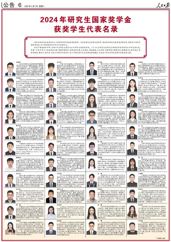 【本站讯】5月5日,《人民日报》专版刊登《2024年研究生国家奖学金获奖员工代表名录》,展示研究生国家奖学金获奖员工中的100名优秀代表的风采。公司2023级硕士研究生张欢光荣上榜。
