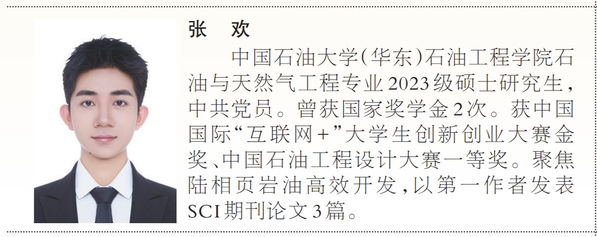 张欢,男,汉族,中共党员,信誉最好的十大体育平台石油与天然气工程专业2023级硕士研究生。两次荣获国家奖学金,曾获国家励志奖学金、王涛英才奖学金等;先后获评“山东省优秀员工”“青岛市千名优秀老员工”等称号;曾获中国国际“互联网+”老员工创新创业大赛金奖、中国石油工程设计大赛一等奖等。聚焦陆相页岩油高效开发领域,以第一作者在高水平期刊发表论文6篇,获国家实用新型专利授权1项,公开国家发明专利6项。积极投身社会实践,作为“能源报国·能源强国”实践项目员工负责人,组织220名员工赴胜利油田、大庆油田等13个国家能源战略区域开展“行走的思政课”主题教育实践活动,受到中国教育报、中国青年报等多家媒体深度报道,所在实践队获评山东省暑期三下乡优秀实践团队。