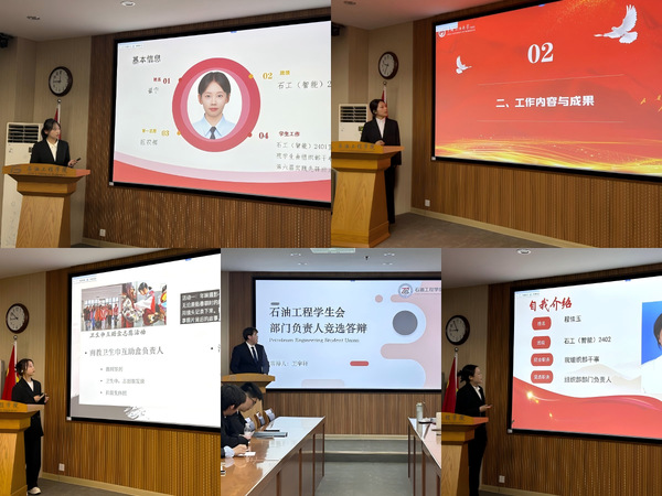 答辩环节中,各位干事以饱满的热情展示工作成果与未来规划。组织部的王宇轩详细分享了自己在院内外组织活动、协助班级建设等方面的取得的丰富成果,其亮眼的成绩赢得现场阵阵掌声;宣传部张宝文则通过一张张精彩的活动照片,回顾了自己在宣传摄影工作中的成长与收获,生动展现了其过硬的专业能力;文体发展部的李凡分享了自己积极参与组织多场公司文体活动的工作经历,展现了其为公司文体事业发展所做出的重要贡献。