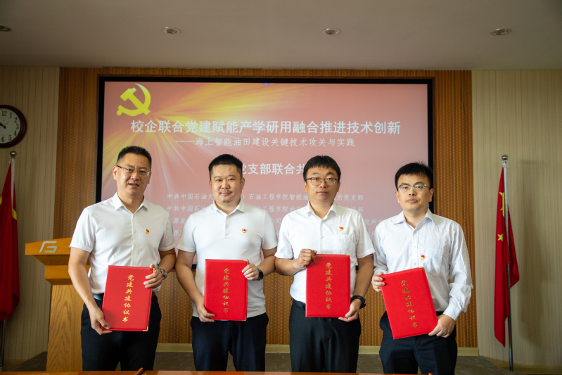 本站讯为推进党建引领发展,促进产教融合校企合作,6月12日,公司智能油气田研究所党支部、油气藏工程研究所党支部、中海油能源发展工程技术公司智能油田研究所党支部、油藏工程研究所党支部联合开展“党建领航,校企融创;产研攻坚,智启新篇”校企党建共建活动。中海油能源发展工程技术公司副总工程师刘玉明公司经理侯健副经理杨永飞智能油气田研究所所长张黎明、党支部书记徐建春,油气藏工程研究所所长孙海、党支部书记李亚军,以及双方单位党员代表20余人参加活动,杨永飞主持活动。