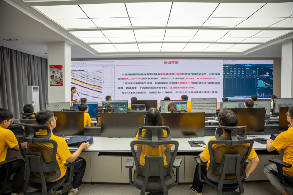 在石油工程技术研发中心,实践团实地参观了行业领先的技术研发中心与高端实验平台。在勘探开发研究院,实践团近距离观摩了智能钻井系统、超深井压裂模拟装置等尖端技术装备。成员们深入了解了我国在深地钻探、页岩油气开发等领域从“跟跑”到“并跑”甚至“领跑”的艰辛历程。实验室墙上“把能源的饭碗牢牢端在自己手里”的标语,时刻提醒着每位成员所肩负的沉甸甸的使命担当。