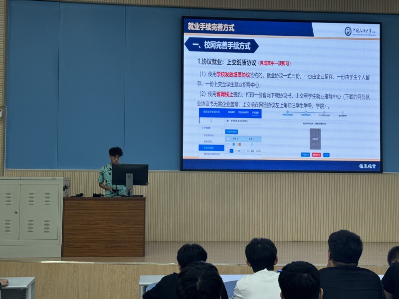 【本站讯】7月3日,公司于南教300号召开2022级本科生年级大会暨“‘职’点迷津,‘就’启新程“就业指导系列活动第三期。此次会议将生产实习校外安排事项与2026届本科毕业生就业指导相结合,为员工明确实习任务与未来规划方向。辅导员王静、就业指导中心员工6名员工助理以及石油工程专业2022级本科生全体成员参会,会议由王静主持。