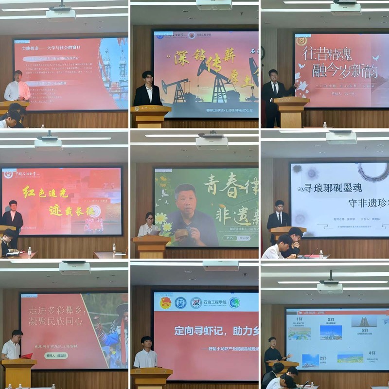 答辩会上,各实践队围绕文化传承、精神引领、乡村振兴、能源发展、民族团结等主题,依次进行了精彩汇报,充分展现了青年学子立足专业、心系家国、服务社会的责任担当。匠魂寻新实践队以文化传承为核心,制定了详实的暑期实践时间轴;红迹实践队聚焦长征精神学习,计划构建“一库三维四式”宣讲体系,力争产出“六个一”系列成果;石油大学定向越野队将结合定向越野赛事契机,深入调研龙虾产业的加工链条、科技支撑体系及电商直播销售模式创新,旨在形成适配性方案服务地方民生与经济发展;文韵拾光实践队关注建筑文化淡化问题,创新采用朝代与地域“时空双线”思路策划实践;光合启能实践队立足国家“双碳”战略,计划从科技与社会双维度切入,开展能源科普实践活动;“油脉探微·智启长庆”实践队将赴陕甘地区油脉,深入长庆油田开展调研;“深钻传薪,厚土铸魂”石油魂实践队计划赴全国多地开展石油魂主题演出,并将在实践前后通过问卷调研实践成效;彝路同行实践队将前往彝族聚居区,参与“火把节”等特色民族节日活动;青遗探脉实践队计划聚焦青岛市黄岛区徐氏传拓、泊里大集等非物质文化遗产的传承保护现状,开展深度调研;天府油锋·红心筑梦实践队旨在探究石油精神与抗战精神的内涵异同;乡遇青芒实践队计划对青岛市多个特色乡村展开调研。