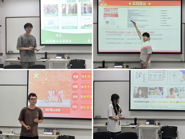 分享会上,各星级实践队代表结合自身实践经历,从不同角度展开分享,干货满满。耀石之辉实践队王子懿围绕实践成果的展示与宣传,讲解PPT逻辑梳理与排版优化,强调用数字化呈现宣传、调研成果,鼓励同学们积极寻求老师帮助,在老师的建议下不断优化完善,并叮嘱同学们实践过程中要做好日常任务跟进工作,注重过程的记录;科左后旗碧野兴乡实践队刘宇聚焦队伍管理,建议明确宣传、后勤、财务、策划等的分工,在内容策划方面,他提出要把实践主题细化成具体的问题,再针对每个具体问题制定切实可行的落实方案;向阳花公益助学团队沐曦支教队石珺则以支教队为例,介绍开展实践前的团队建设工作,并建议同学们在开展实践前一定要做好调研工作,了解实践主题的相关背景;红迹实践队王辉分享实践队经历,再次强调了团队任务分工的重要性,以及确定清晰的方向和目标的必要性。