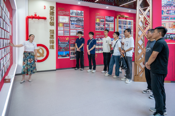 随后,在党建教育基地,于梦飞结合公司发展历程,讲解了从“老石油人战天斗地”到“新时代学子科技攻关”的精神脉络,使“艰苦奋斗、为国奉献”的信念在同学们心中扎根。在深层油气全国重点实验室中,学长演示的“钻井液调配”让地层探测不再抽象,“实验室成果应用于全国油气田开发”的主题介绍让同学们认识到课本里的“科技创新”是为国赋能的真实力量。
