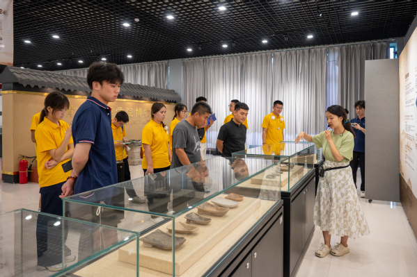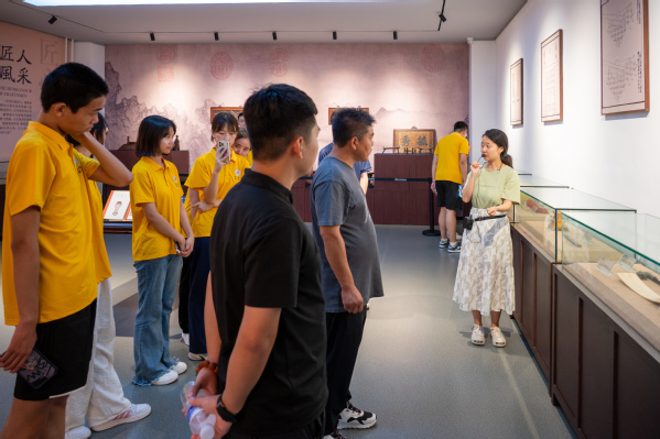 移步黄海公司雷锋纪念馆内,150余件实物展品中,那补了又补的旧军装和字迹工整的助人事迹本,让“雷锋精神”从课本走向可触可感的记忆。随后,在黄海公司博物馆,研学团跟着讲解人员的脚步,依次参观了匠心艺蕴展馆、文房雅器展馆、中华古砚展馆和汉画像砖展馆。每一件生动展品都如跨越时空的对话,这不仅是一次文化艺术的沉浸体验,更让研学团的同学们直观感受到中华文明的博大精深。