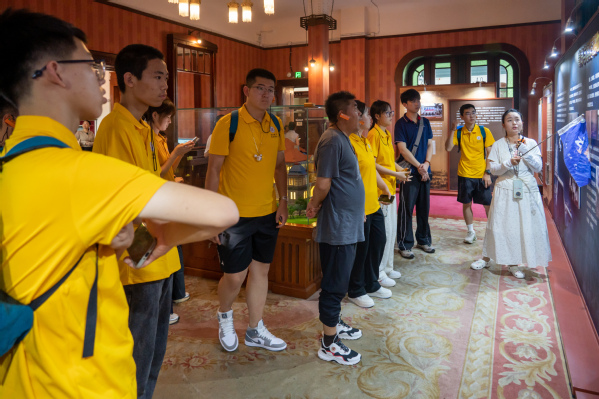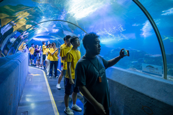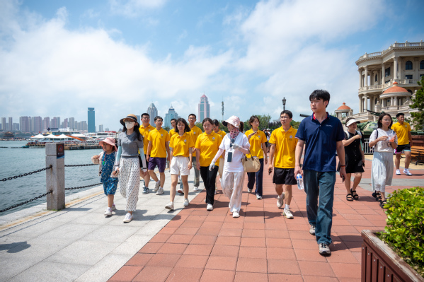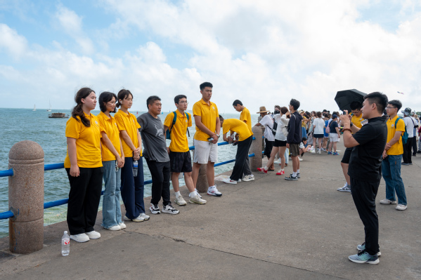 海底世界中鲸鱼骨架的磅礴与珊瑚的精巧,让隋子轩同学感叹“原来课本里的生物多样性,是这样触手可及的美。”中山路的烟火气中,天主教堂的尖顶、老商铺的木招牌,展现出青岛的人间烟火;百年栈桥从昔日军火补给线到如今城市名片的变迁,是中国从弱到强的缩影。甘旗卡第一高级中学的包佳敏表示,青岛的魅力不仅在于自然景观,更在于其承载的历史记忆与开拓精神,此次研学收获的不仅是知识,更是沉甸甸的责任感。