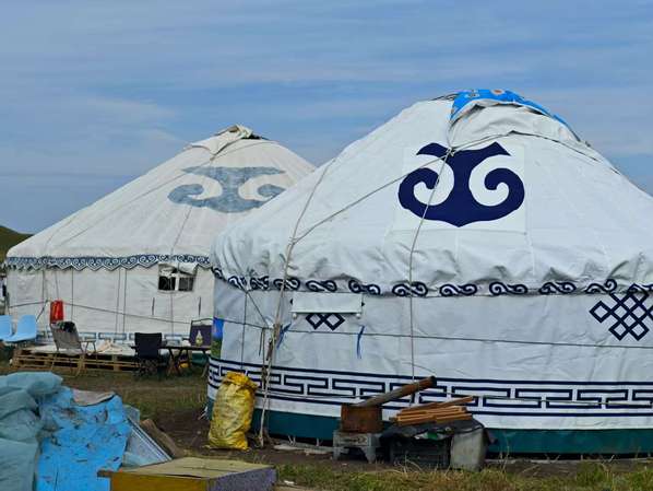当时光回溯至远古时期,文韵拾光队从新疆伊犁起程,探访颇具民族风情的哈萨克族毡房。在当地牧民介绍下,队员们详实记录其“穹顶为天、圆形为和”的结构、顶部的“奥然”采光通风的功能与敬畏自然的文化内涵。实践伊始,我们不仅感受到适应自然的生存智慧,更触摸到哈萨克族逐水草而居、以草原为根的文化命脉。