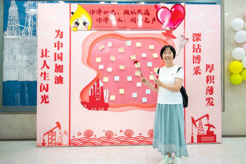 为营造尊师重教浓厚氛围,公司继续开展“为教师亮灯”活动,策划制作教师节祝福视频,在公司门厅、大厅等电子显示屏,为公司全体老师送上节日的祝福。公司员工会和研究生会代表全体同学为公司老师精心布置了祝福墙,以气球和条幅对门厅进行装点,为公司师生提供教师节的拍照打卡地,以抽签的形式为老师们送上贴心的祝福。老师们纷纷驻足,撷一支康乃馨,抽一支上上签,拍一组合影留下教师节最温馨的画面。