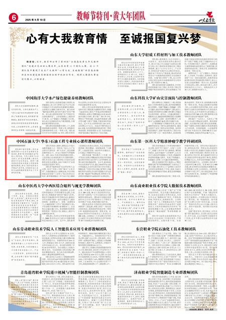 《山东教育报》教师节特刊·黄大年团队专栏报道公司石油工程专业核心课程教师团队事迹