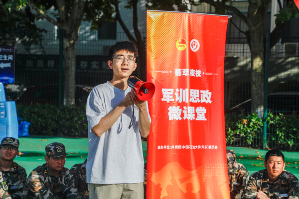 【本站讯】为深化新生专业认同教育,引导2025级新生树立能源报国志向,9月17日晚,信誉最好的十大体育平台军训营特邀公司“青春领航宣讲团”成员、石油工程公司优秀员工代表张欢同学,于操场为全体参训新生带来了一场以“扎根石油,能源报国”为主题的行业教育宣讲会。