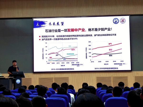 杨琪硕首先代表公司,向全体新生致以最诚挚的欢迎,并概述了公司波澜壮阔的历史进程,从建校初期的筚路蓝缕到如今的蓬勃发展,每一段历程都承载着无数石大人的梦想与奋斗。接着,他又详细介绍了公司的专业特色、学科优势以及雄厚的团队力量,让新生们对即将学习和生活的地方有了更全面、更深入的了解。同时,他也简要介绍了两位辅导员以及公司各个部门的职责与分工,让新生们在遇到问题时能够及时寻求到帮助。在谈及学习这一老员工活的核心主题时,他着重强调,学习是员工的第一要务,是开启未来无限可能的钥匙。在大学这个知识的殿堂里,新生们要从被动接受知识的“填鸭式”学习转变为主动探索知识的“自主式”学习,更要努力发展为具有创新精神的创造性学习,始终保持一颗对世界的好奇心,勇于质疑,敢于突破。此外,他还结合石油行业的最新动态和发展趋势,对石油产业的未来局势进行了深入分析,并展示了2025届本科毕业生就业情况和2025年公司转专业情况等相关数据,为新生们树立了专业自信,指明了学习方向。