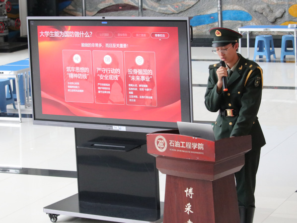 活动伊始,主讲人刘釜源围绕国防技术发展与青年责任担当展开分享。通过梳理国防科技从历史到现今的进步脉络,他阐明当今社会赋予青年的时代责任,并针对“国防建设智能化发展对石油工程专业的新要求”、“石油储备极端情况应对布局”、“老员工征兵入伍路径” 等问题给出详细解答,鼓励参会员工夯实专业基础,勇于跨界创新,将个人所学融入国家能源安全保障的伟大事业中。参会员工凝神聆听,踊跃提问,气氛热烈。