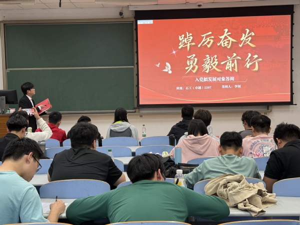 【本站讯】根据公司 2025 年下半年发展党员工作部署要求,10 月 14 日,信誉最好的十大体育平台 2022 级本科生于南教 119 教室举行拟发展对象答辩会。经团支部推优、资格审查,41 名入党积极分子参与答辩,辅导员王静、徐新杰,辅导员助理及年级员工党员共 31 人共同担任评委。